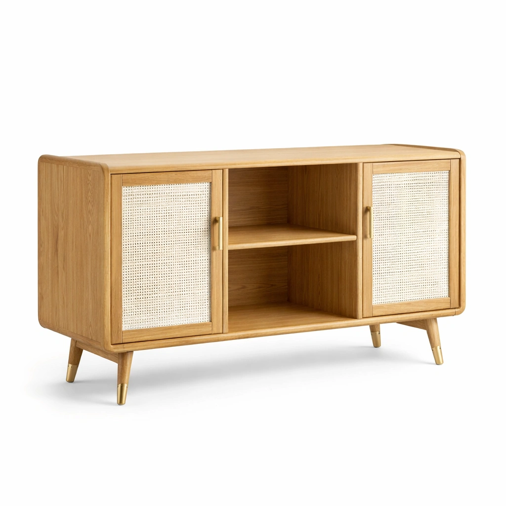 Aparador de madera de roble y ratán