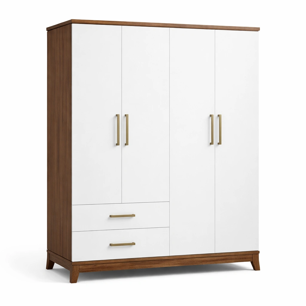 Armario de MDF 3 puertas 2 cajones blanco y nogal 180x120x50cm